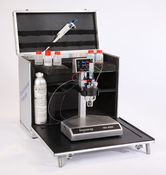 We provide different standard kits which includes standard solutions and other chemicals as buffers, chelating agents etc. For mains independent measurements we provide a rechargeable battery pack.TEA 4000 Field Case